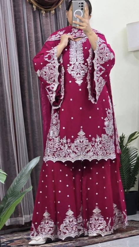 ✨ Set: Kameez + Garara Palazzo + Embroidery Dupatta