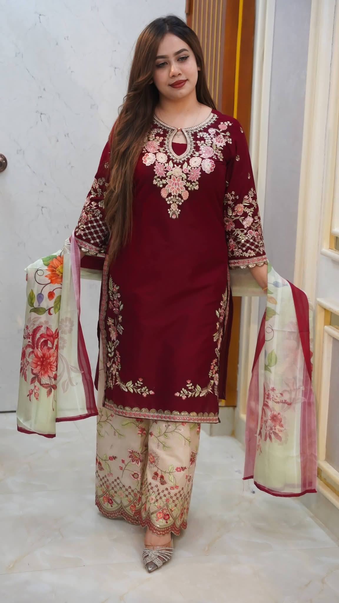 👉কাজ- জামা, সিকুয়েন্স জরি সুতা এবং মাল্টি সুতার কাজ করা !